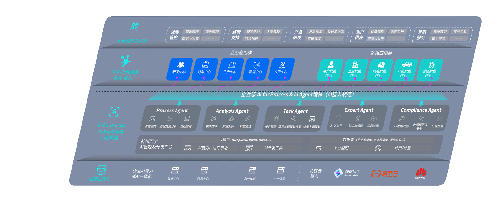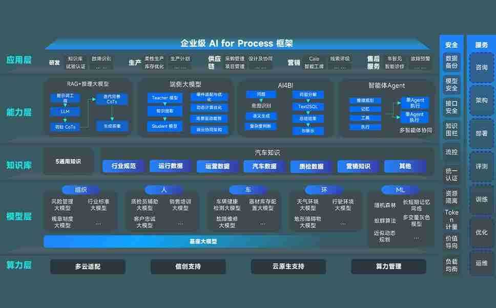 金沙990CC问学智车解决方案是一套基于AI技术的汽车行业智能化系统,,,,覆盖从底层算力到顶层AI应用的全栈方案。。。。方案由算力层、、、模型层和应用层组成:算力层,,,,方案支持多种一体机配置,,,,具备云端灵活部署、、、多云适配以及动态优化计算资源的能力;模型层,,,金沙990CC问学平台版提供了企业级AI应用一站式构建与管理平台,,,支持基于后训练强化技术的汽车企业专属模型的训练、、评测和运营;应用层,,金沙990CC问学DeepSeek版提供包括超级员工、、智能招采、、智能营销、、、、智能客服、、、、AI for BI等一系列解决方案,,,,可助力汽车行业实现数字化转型,,让管理更智能、、、响应更敏捷。。。。